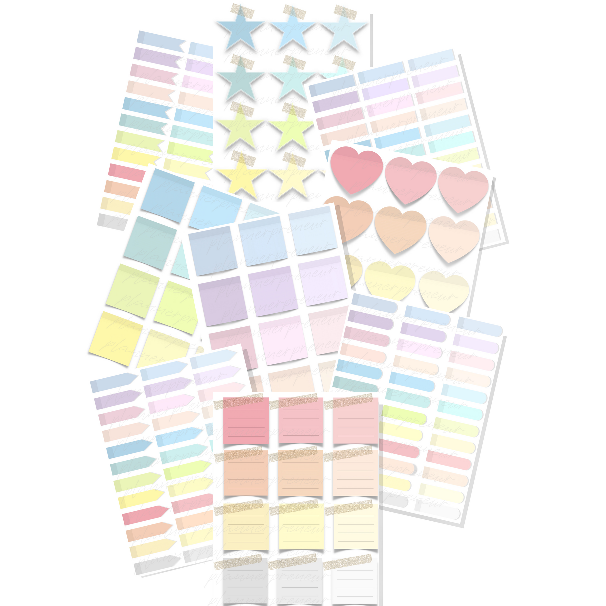 Digital Stickers 324 Pastel Digital Sticky Notes Bundle